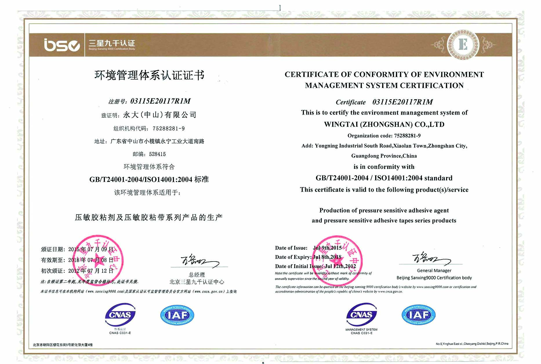 连续18年通过ISO9001和ISO14001双体系再认证审核。