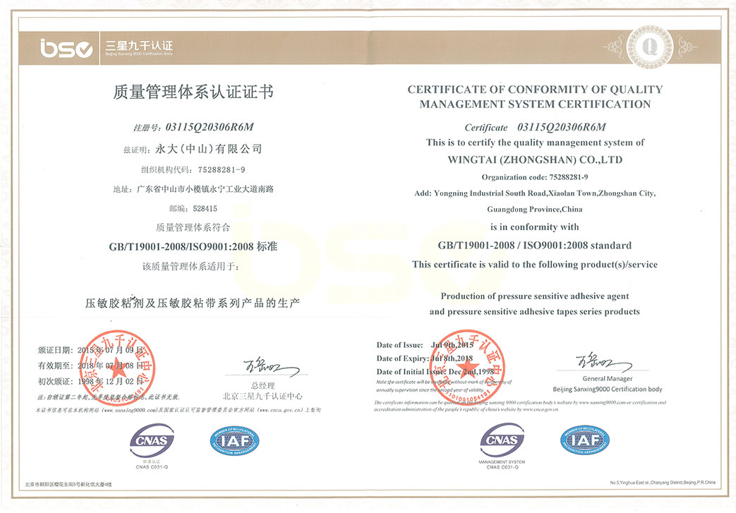 永大公司是中国胶粘剂和胶粘带工业协会副理事长单位、全国胶粘剂标准化技术委员会委员单位、全国胶粘剂标准化技术委员会压敏胶制品分技术委员单位、广东省胶粘剂行业协会副会长单位、广东省专精特新中小企业、广东省创新型中小企业。
